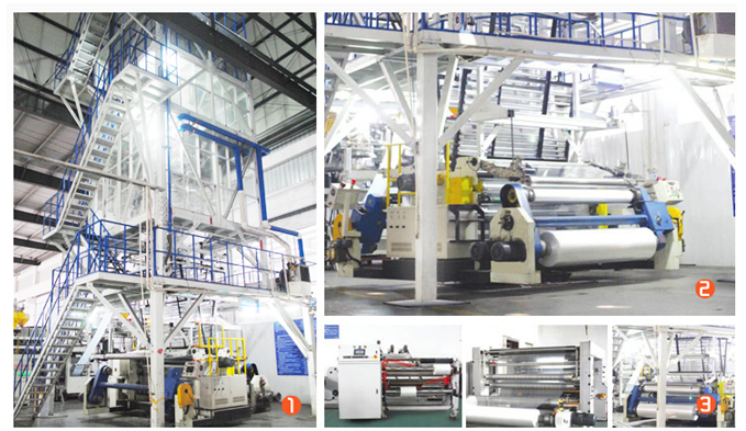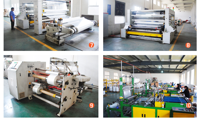 說明:①②③④吹膜設備。⑤原料車間。⑥吹膜車間。⑦分切設備。⑧分切車間。⑨對折設備。⑩制袋車間。
